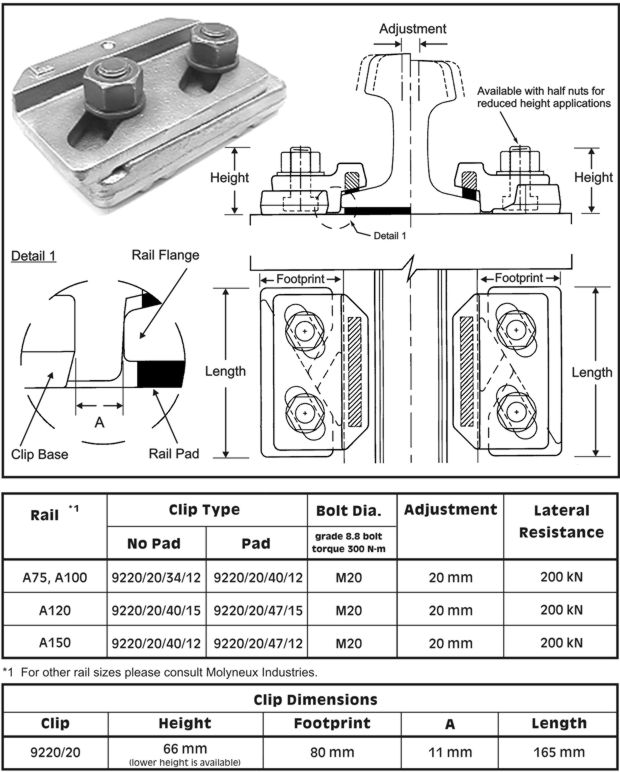 Weldable & Interlocking Rail Clip (metric): 9220 |