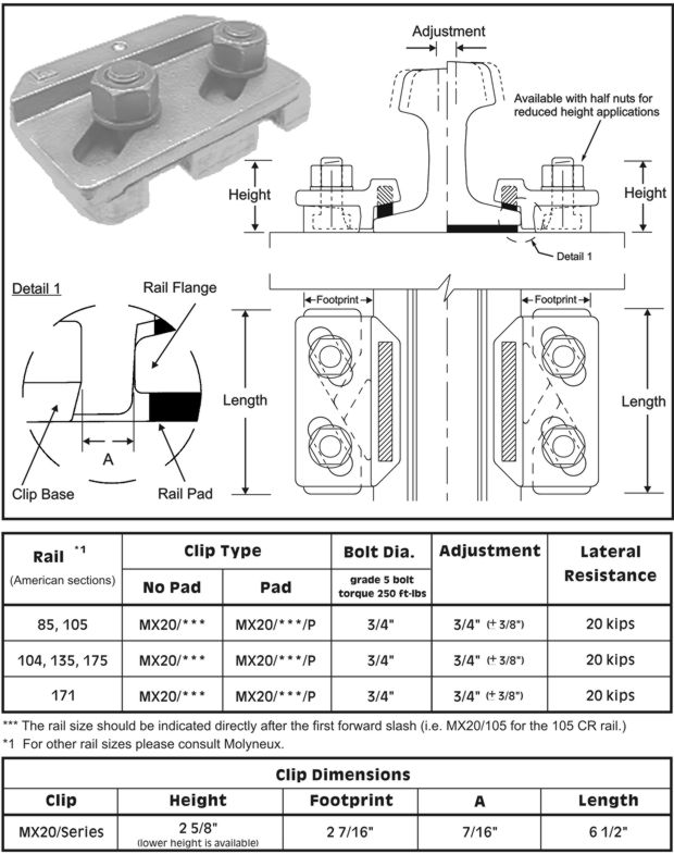Weldable & Interlocking Crane Rail Clip: MX20 |