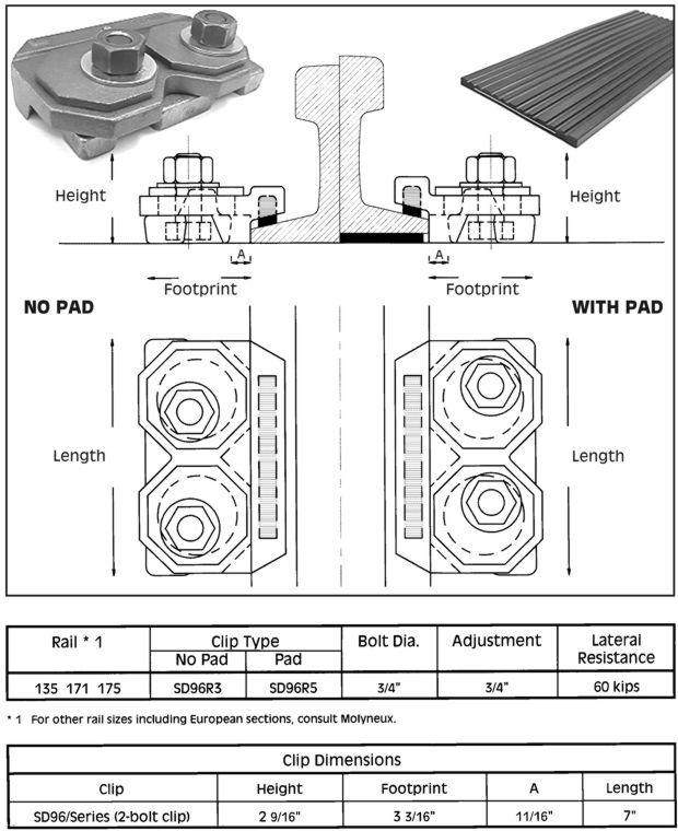 A double bolt welded adjustable crane rail clip that features a circular cam that locks the clip into position against the rail. The clip is designed and performs as a bearing connection. |