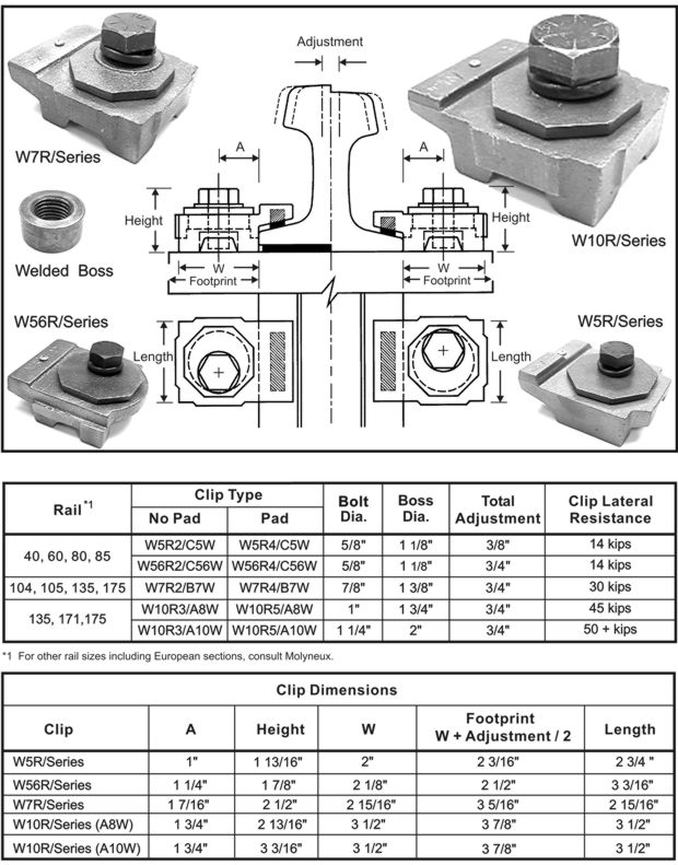 Welded Boss Rail Clip: W/Series (pressure block) |